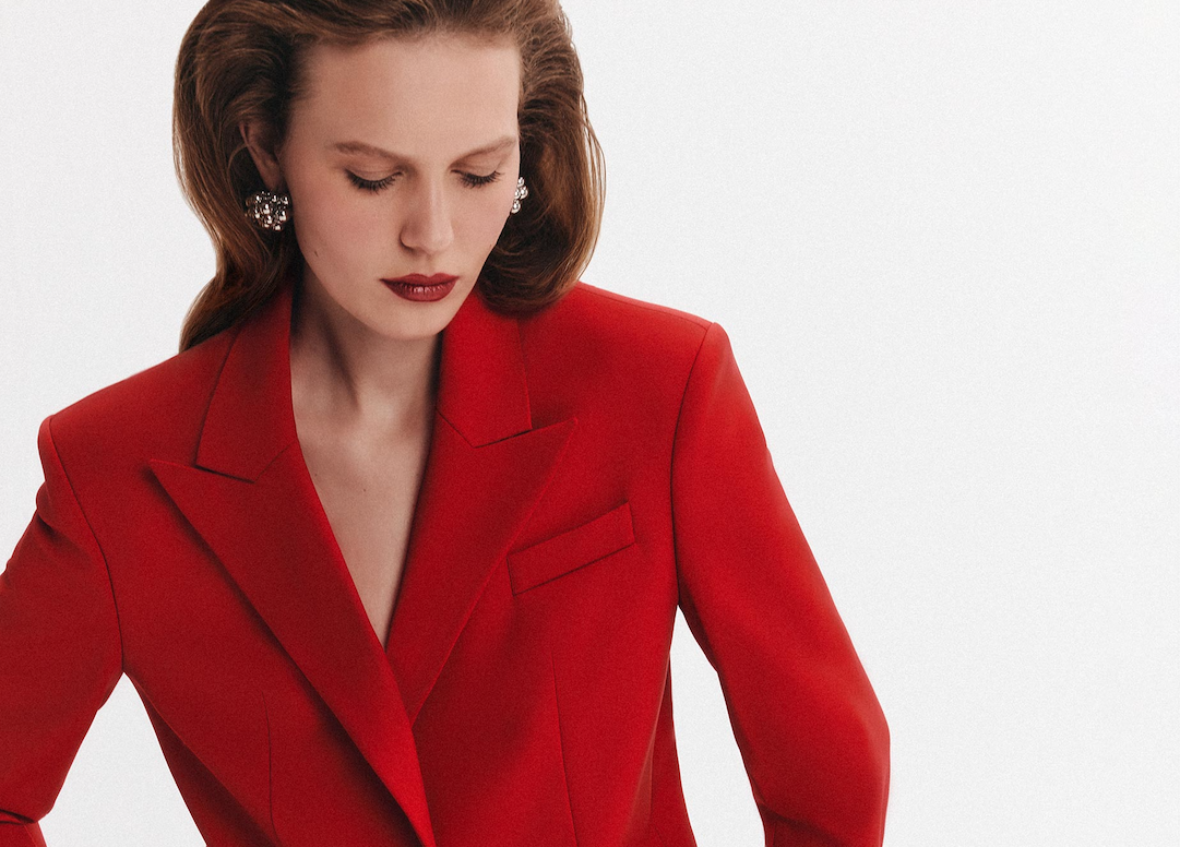 Сочная рубашка из капсулы в красном оттенке выглядит как настоящее признание в любви, воплощенное в ткани. Дополняет это прекрасное чувство юбка в total monochrome.