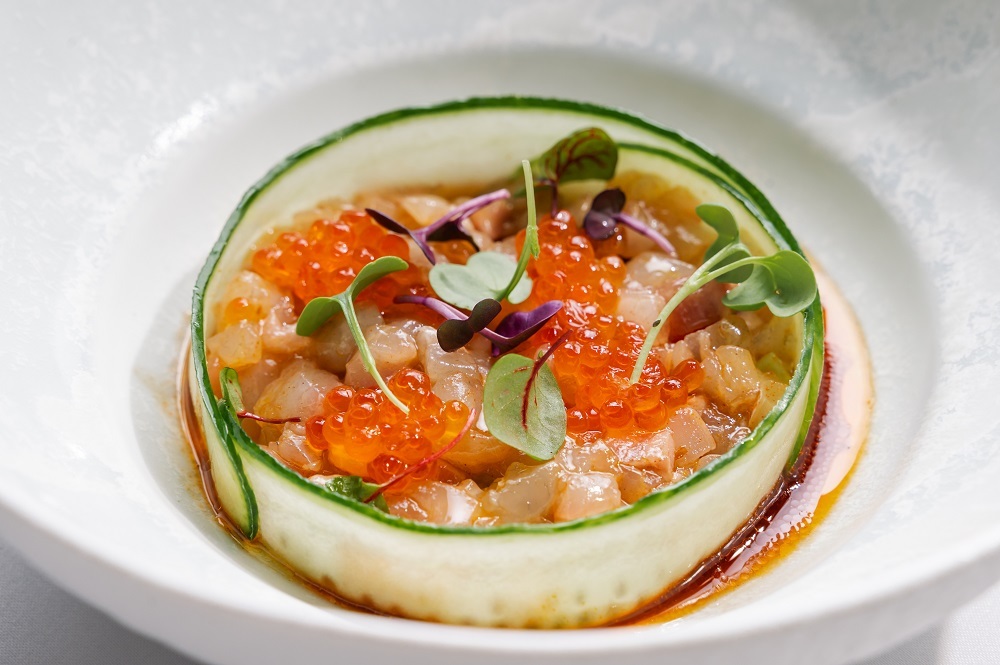 Равноценная альтернатива – филе сибаса запеченное с нежным баклажаном (1650 руб.) с соусом гуакамоле. Особый аромат рыбе придает авторский соус с шалфеем. Тартар из дорадо (1190 руб.) – лучший вариант к вечернему бокалу вина. Отборное филе нарезано кубиками и полито оливковым маслом, томат, огурец, и авокадо придают еще больше свежести и летнее настроение, а щедрая порция красной икры делает блюдо праздничным – тот самый случай, когда праздник можно устроить без повода и каждый день.