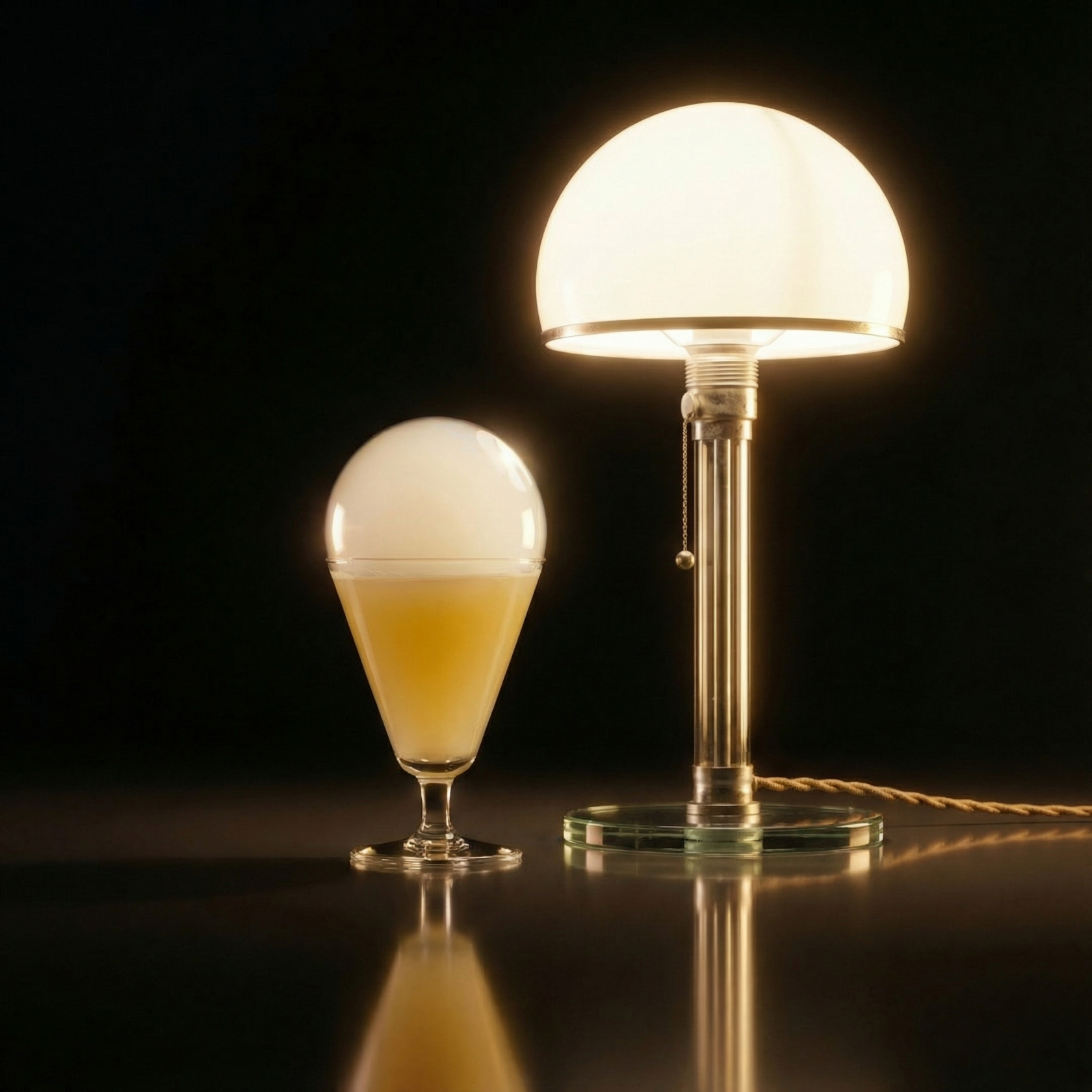 Arco Lamp (XX Century Martinez)| Джин, красные ягоды, микс вермутов и умами – крепкий и сложный. Торшер Arco – культовый объект дизайна XX века, построенный на контрасте тяжести и лёгкости. Этот баланс передан через классические рецепты Martinez и XX Century: строгая форма, за которой скрывается глубокая вкусовая структура.