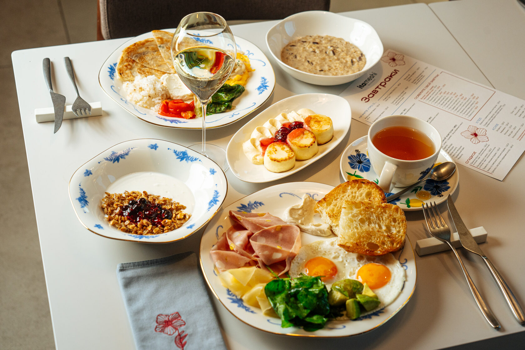 Соединяя непохожее, ITAMESHI умеет быть разным. Поэтому добрая утренняя классика в его меню – на почетном месте. И пока весь город только просыпается, можно греться в его уютном тепле, расходящемся с открытой кухни, радоваться ярким краскам расписных тарелок и начинать день гранолой, блинчиками с ягодами и сырниками с кремом маскарпоне и вишневым вареньем.