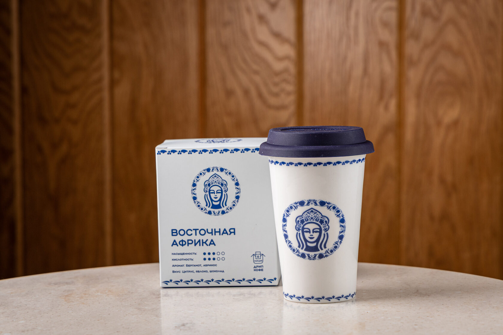 • дрип-кофе «Восточная Африка» (890 руб.),оформленные в фирменной сине-белой стилистике.