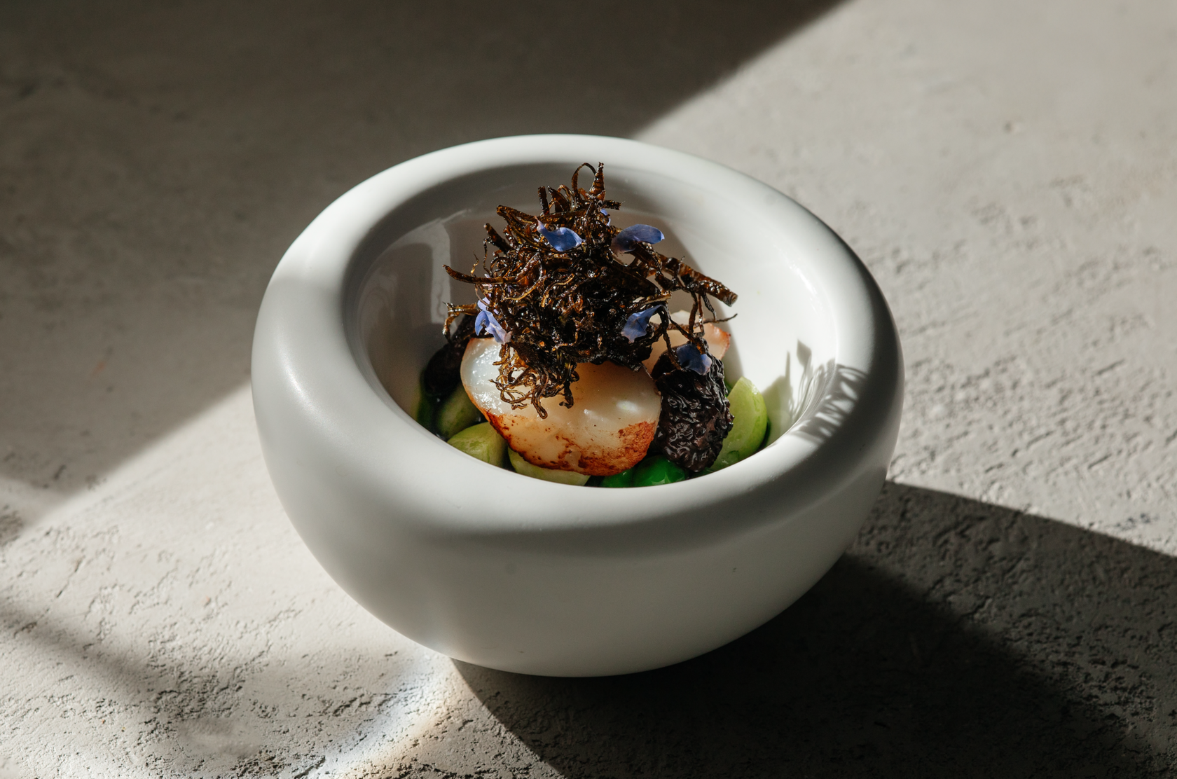 Только у его гребешка тонкие азиатские нотки белого мисо, копченого масла и хруст водорослей комбу и карамели. С уверенностью опытного гастрономического экскурсовода Александр Богданов легко скользит между эпохами, легендами и артефактами. Достопримечательность Гатчины – миниатюрная гатчинская форель, которую двести лет назад ценили дороже, чем осетрину. И в меню петербургского бранча ее вкус на фоне соуса из мидий и шампани еще богаче и ярче. А галантин из дичи словно из царских обедов, но, возможно, еще изысканней и сложнее: в маленькой перепелке воздушный мусс с фисташками и мортаделлой, а к ней соус из зелени, миндаля и карамелизированного лука и пюре из козлобородника, приправленное щучьей икрой.