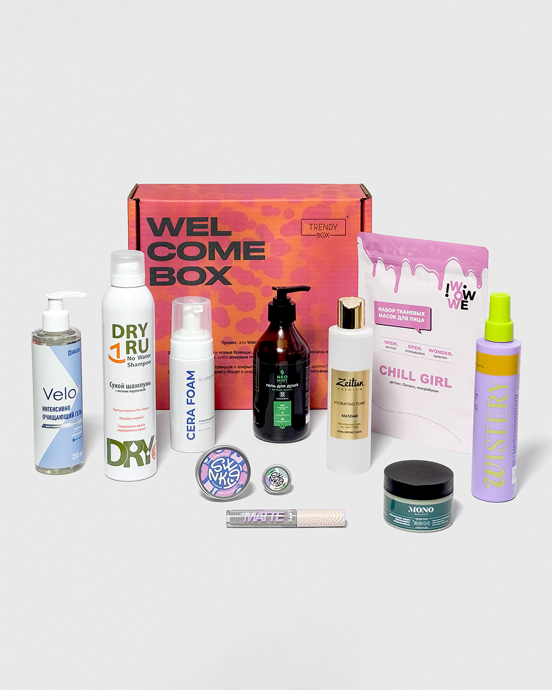 WELCOME BOX от Trendy Box – бьюти-знакомство с новыми брендами и яркими новинками, собранными в формате полноценного ухода – от очищения до финальных акцентов в образе.